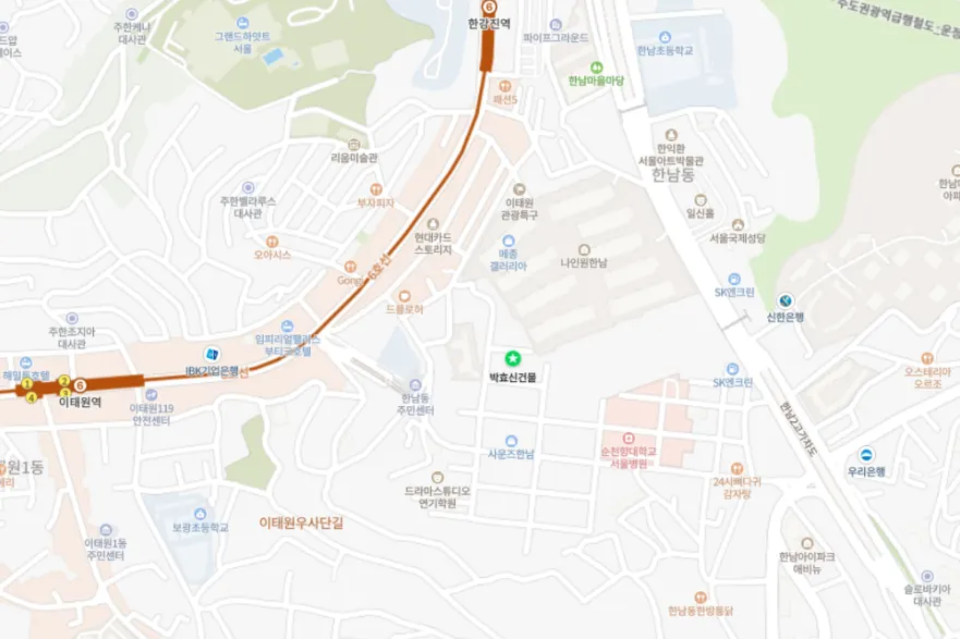 6호선 한강진역과 이태원역과도 다소 멀리 떨어져 있긴하지만